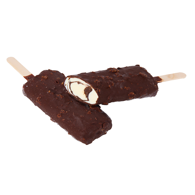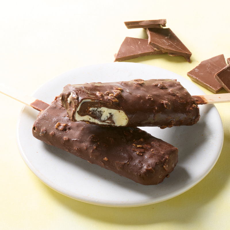 チョコバッキーにごつごつした見た目のチョコをコーティングした、さらに食感を楽しめるよう進化したチョコバッキーです。ザクザク食感のフィヤンティーヌとシュガーコーンクランチを混ぜたチョコをコーティングすることで、これまでのチョコバッキーのゴリっとバリっと、パリッとしたチョコの食感に、チョココーティングのパリッと、ザクっと食感をプラス。風味豊かなコーティングチョコと焼き菓子の様々な食感でさらに食べ応えのあるチョコバッキーに仕上げました。ミルク感をアップしてチョコに負けないよう改良したアイスとチョコの味わいとともに、食感を楽しめる新しいチョコバッキーです。