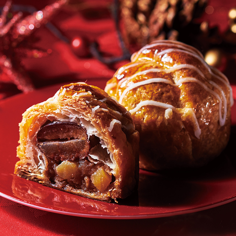 栗ペーストたっぷりのマロンクリームの甘さとあんずジャムの酸味が絶妙なバランスになっています。ヨーロッパ産発酵バターが香るパイのサクサクと栗の風味を楽しめる商品です。