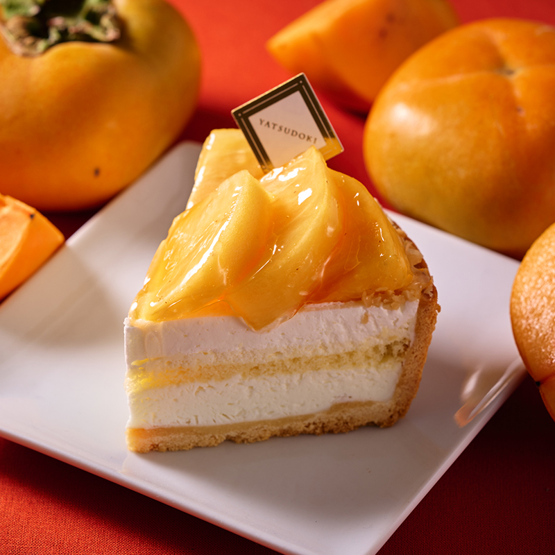 皇室献上もされるほどの貴重で糖度が高く豊かな甘みが特長の柿をふんだんに飾った一品です。香ばしく焼き上げたタルトに、北海道産クリームチーズを使用した爽やかな酸味と味わいのレアチーズクリーム、カスタード入りホイップクリーム、滑らかな口溶けの純生クリームを絞り、甘みの強い柿をふんだんに飾りました。